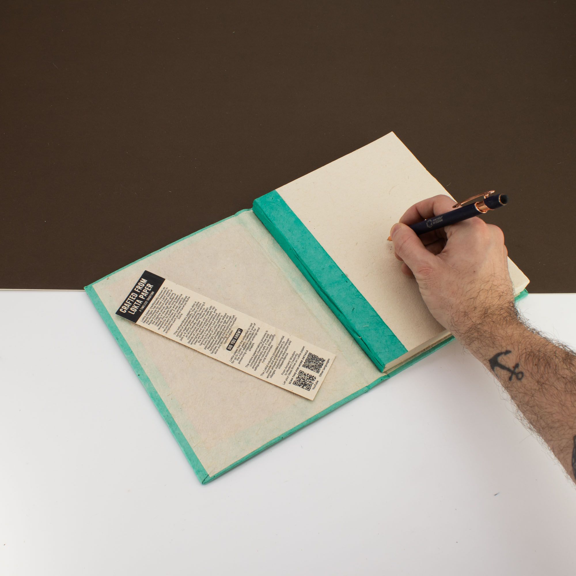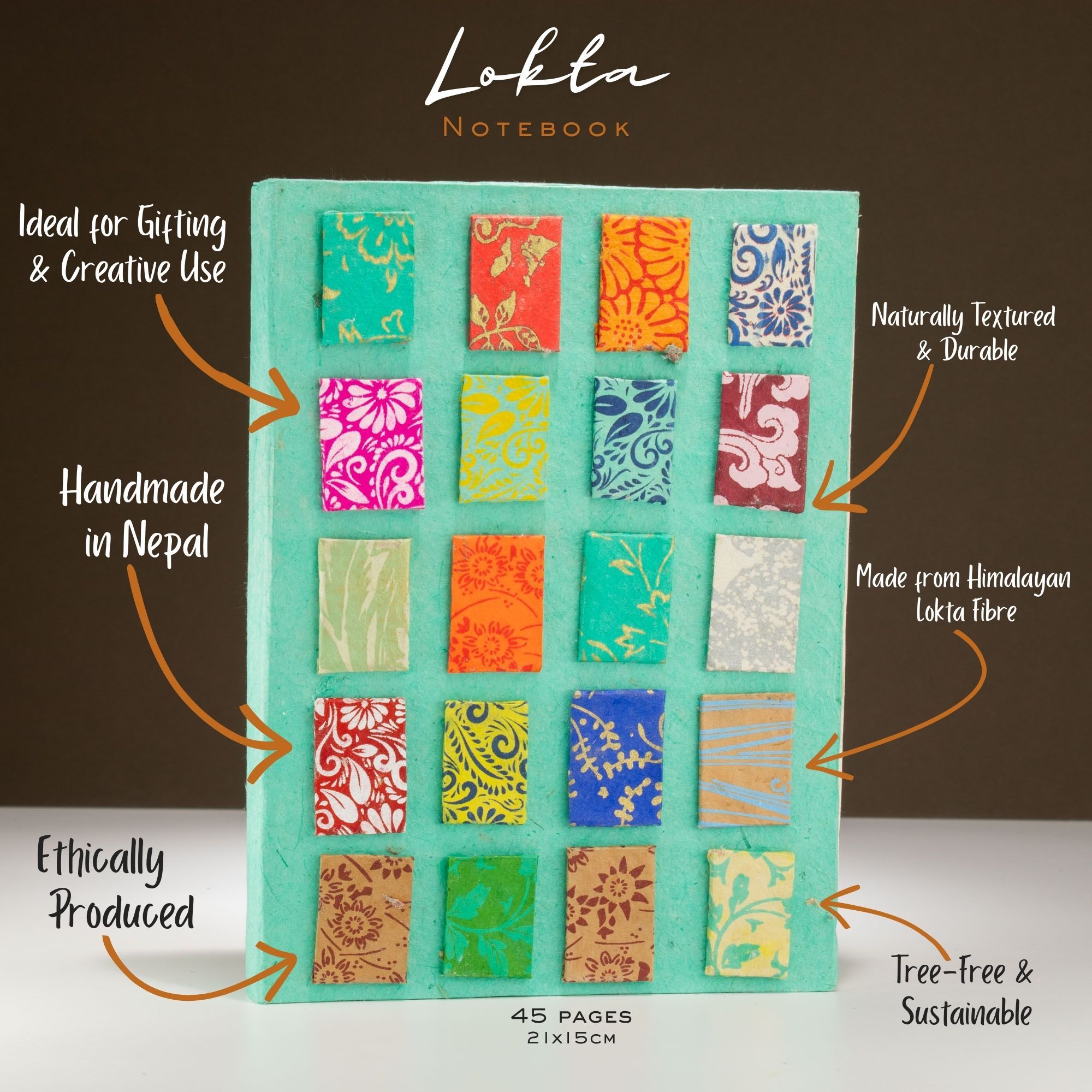 Lokta Mini Tiles Notebook – Large (21x15cm) – 45 Leaves – Includes Bookmark – Teal
