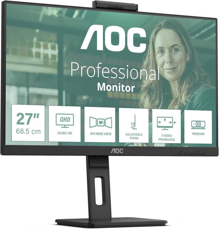 Il monitor AOC Q27P3QW offre una risoluzione QHD (2560×1440) con diagonale 27 IPS e supporto per HDMI, DisplayPort e MM. Dotato di funzione Pivot, regolazione dell’altezza e webcam incorporata, è ideale per un’esperienza visiva professionale e versatile.