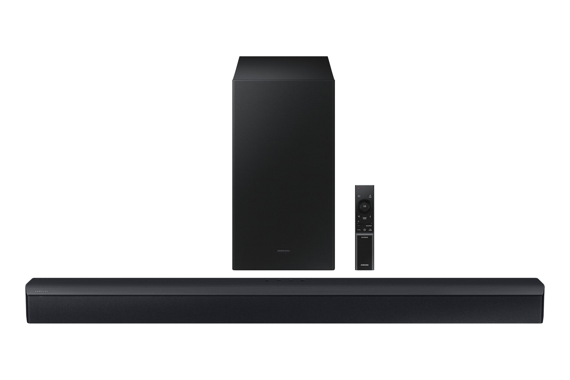Il Soundbar Samsung 2.1 con subwoofer integrato offre una potenza di 300W e connessioni via Bluetooth per un’esperienza audio completa. Supporta anche l’HDMI ARC, rendendolo ideale per sistemi home cinema senza fili. Perfetto per la qualità del suono stereo surround in casa o ufficio.