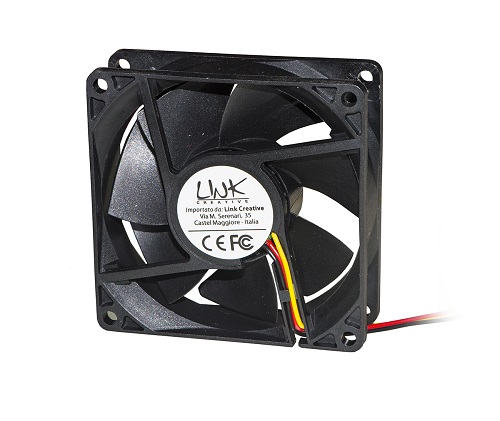 VENTOLA PER CASE 80X80X25MM BK 12V CONNETTORE 3 FILI CON VITI INCLUSE